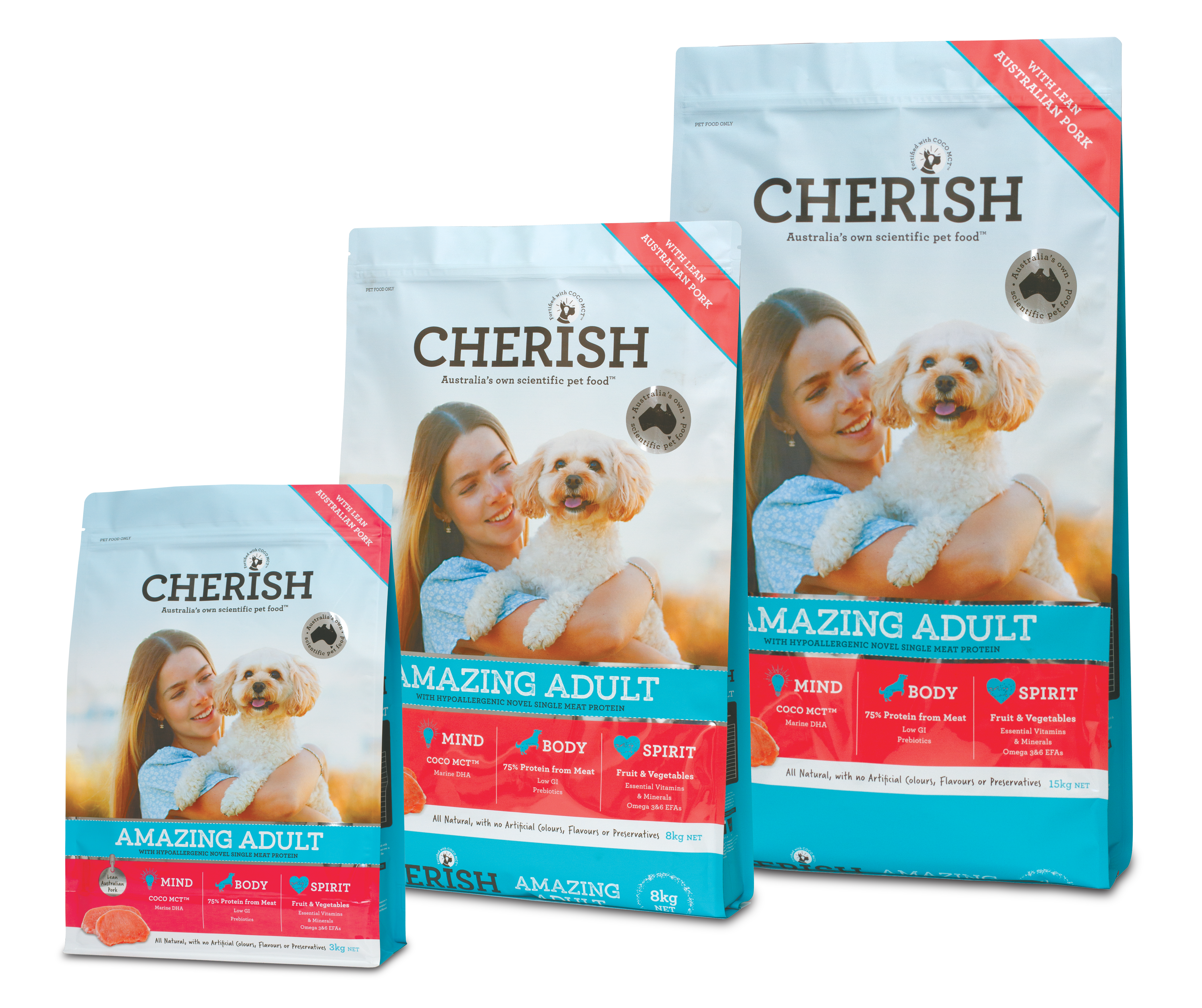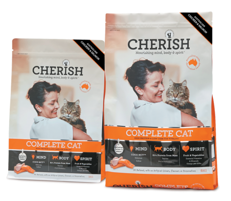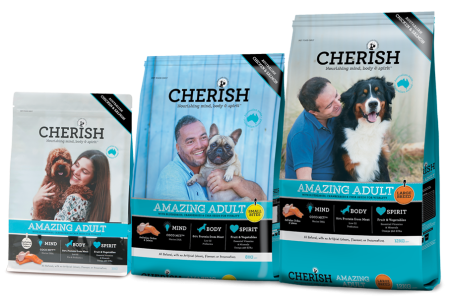 Cherish nourishes mind, body and spirit. It’s packed full of specific superfoods for their scientifically established benefits and has the perfect balance of nutrients and quality Australian ingredients to sustain good health and happiness. Pets love the flavour and you’ll love the difference you see in their total wellbeing.